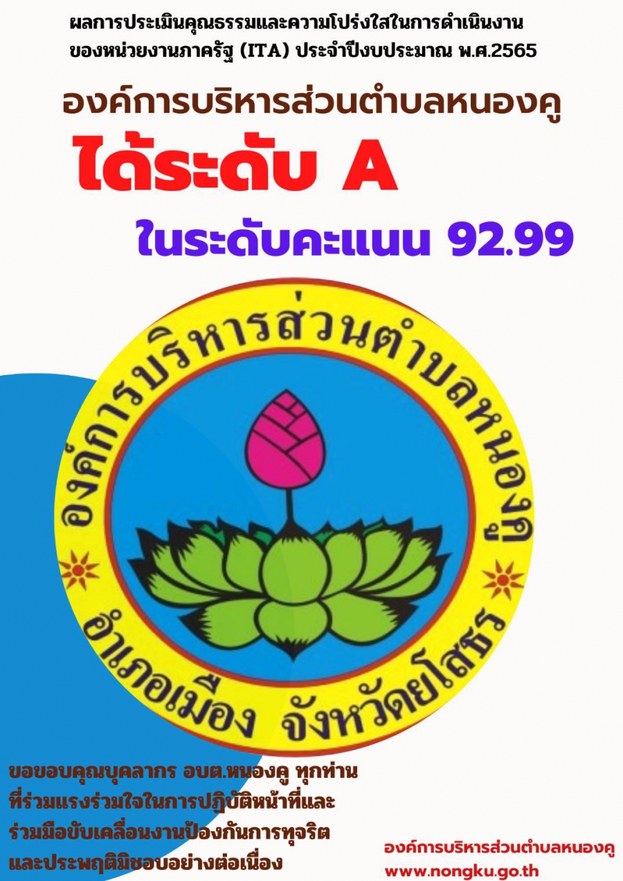 วันจันทร์, 08 สิงหาคม 2565 10:24ประกาศผลคะแนนการประเมินคุณธรรมและความโปร่งใสในการดำเนินงานขององค์กรปกครองส่วนท้องถิ่น (Integrity and Transparency Assessment : ITA) ประจำปีงบประมาณ พ.ศ.2565