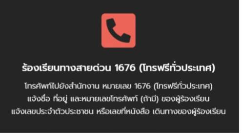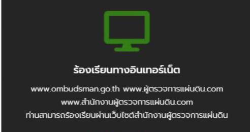 วันอังคาร, 24 มกราคม 2566 10:18ด้วยสำนักงานผู้ตรวจการแผ่นดิน ได้จัดทำช่องทางการร้องเรียนต่างๆ เพื่ออำนวยความสะดวกให้กับประชาชนในการร้องเรียน หากท่านได้รับความเดือดร้อนหรือความไม่เป็นธรรมจากการไม่ปฏิบัติตามกฎหมาย หรือนอกเหนืออำนาจหน้าที่ตามกฎหมายของหน่วยงานของรัฐ หรือเจ้าหน้าที่ของรัฐ หรือหน่วยงานของรัฐยังมิได้ปฏิบัติหน้าที่ให้ครบถ้วนตามหมวด 5 หน้าที่ของรัฐ ตามรัฐธรรมนูญ หรือมีกฎหมาย กฎ ข้อบังคับ ระเบียบ คำสั่ง หรือขั้นตอนปฏิบัติงานใดๆ ที่ก่อให้เกิดความเดือดร้อน หรือไม่เป็นธรรมแก่ประชาชน หรือเป็นภาระแก่ประชาชนโดยไม่จำเป็น หรือเกินสมควรแก่เหตุ สามารถแจ้งหรือร้องเรียนได้ที่ ผู้ตรวจการแผ่นดิน ตามช่องทางด้านล่างนี้